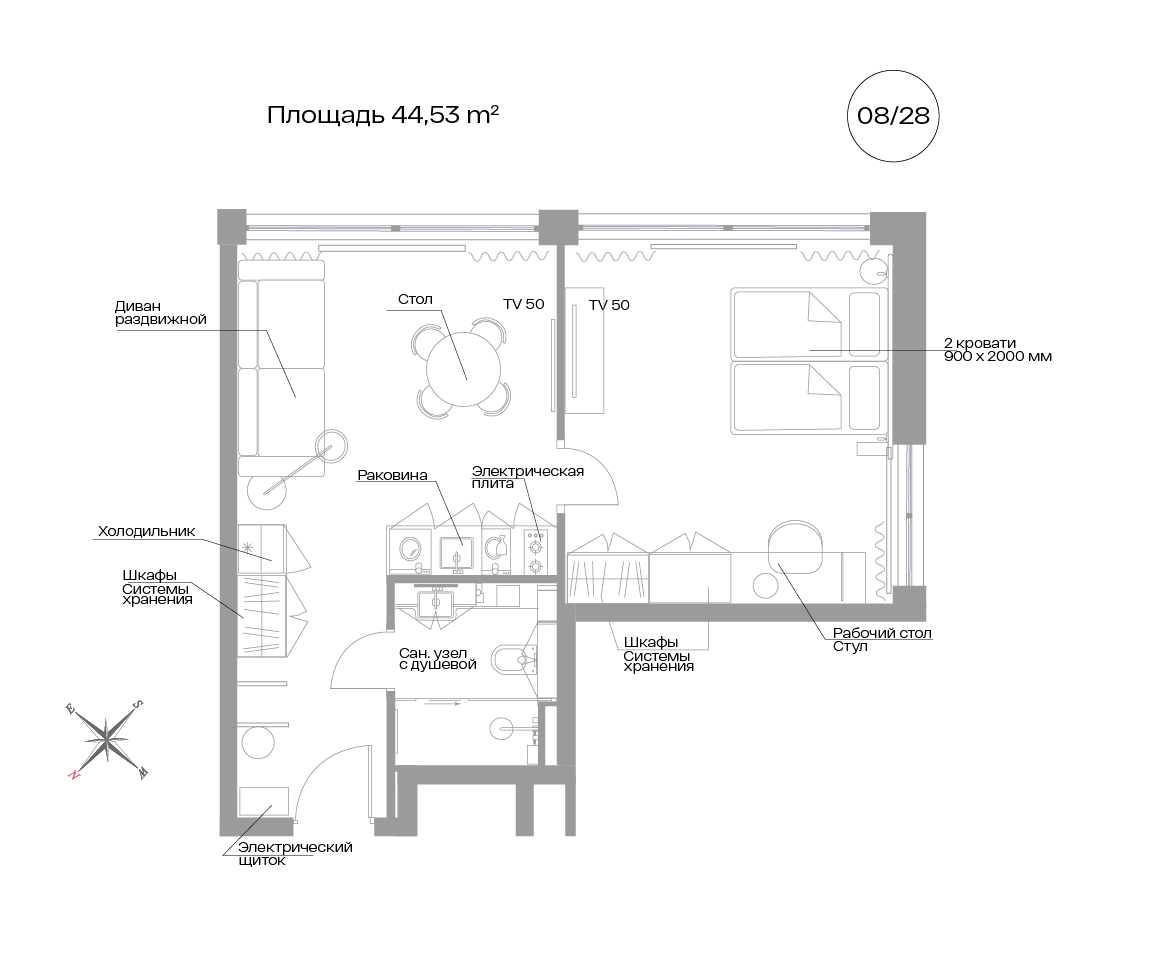 Общая площадь44.53 м²