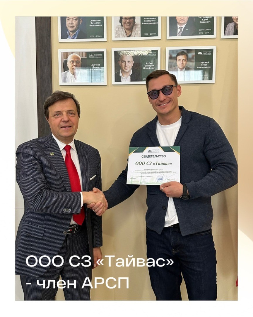 26 марта 2026 президент АРСП Горский Игорь Анатольевич торжественно вручил Свидетельство о членстве в АРСП руководителю отдела продаж Денису Розанову.